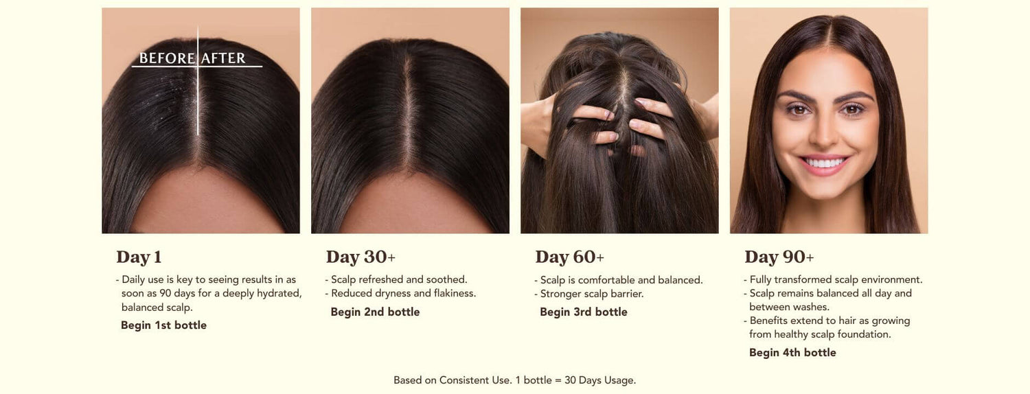 You can use the scalp serum daily or every other day, depending on your scalp's needs. Consistent use helps maintain scalp moisture levels and keeps the skin barrier balanced.