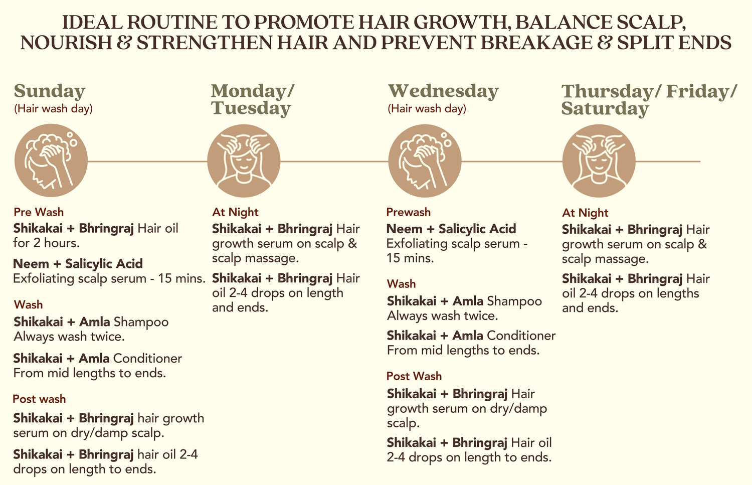 - Shikakai Serum: Dm Water, Disodium Ethylenediaminetetraacetate, Lecithin, Sodium PCA, Glycerin, Pea Protien, DL Panthanol, Acacia Concinna(Shikakai)Extract, Emblica officinalis(Amla) extract, Azadirachta(Neem) Leaf Extract, Copper tripeptides-1, Eclipta Alba (Bhringraj)Extract, Bacopa Monnieri (Brahmi)Extract, Phenoxyethanol, Fragrance.