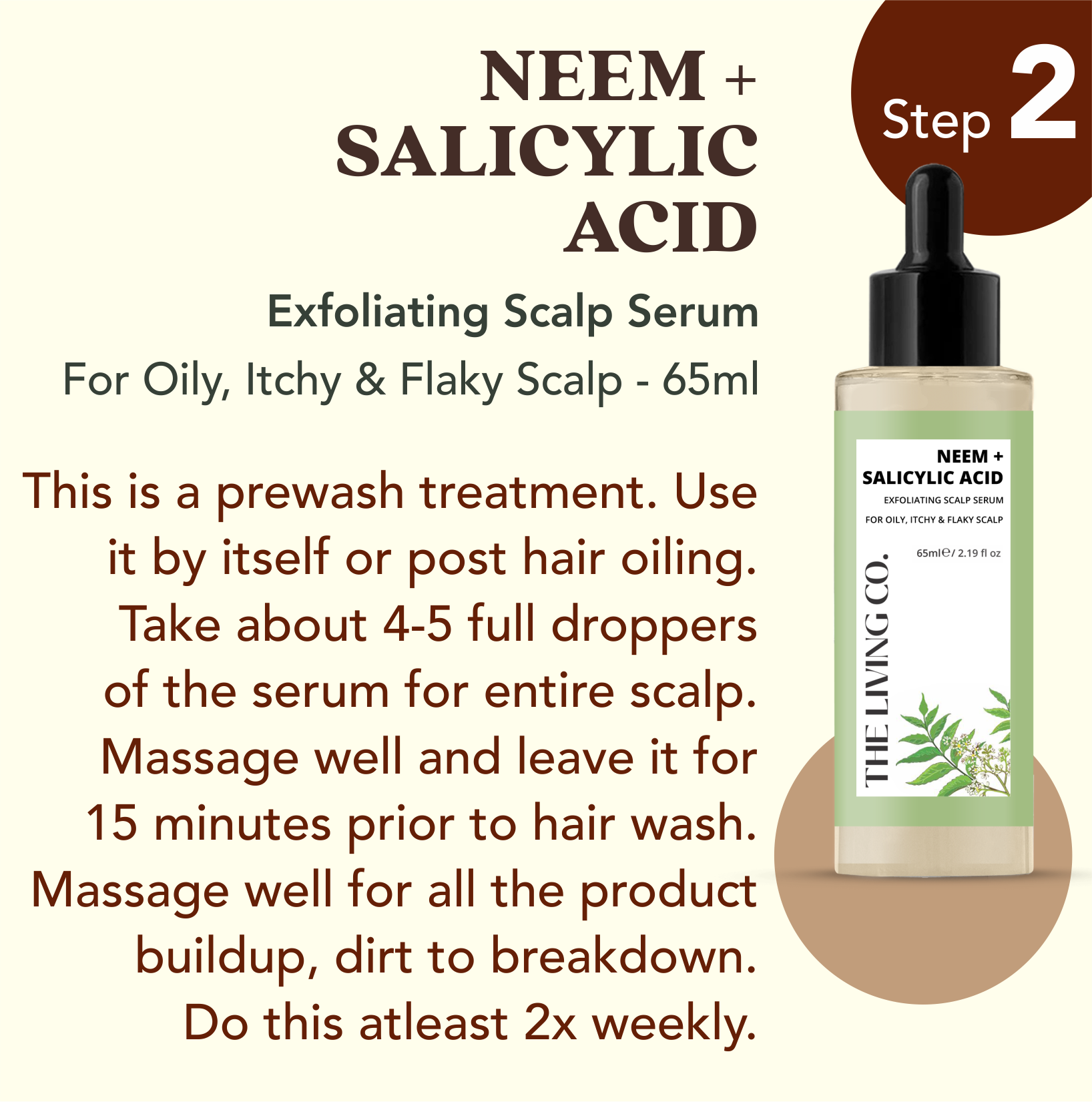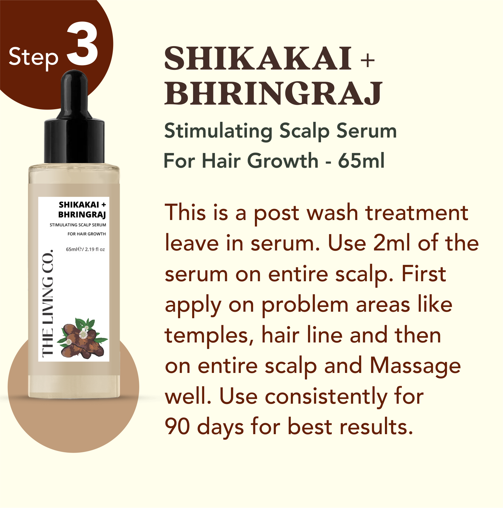 Unlock the secret to luscious locks with our meticulously crafted kit of hair elixirs. This harmonious blend of nourishing hair oil, exfoliating scalp serum, and hair growth serum is your ultimate path to reducing hair fall, promoting rapid hair growth, and adding stunning volume and body to your tresses. Our Shikakai + Bhringraj Nourishing Hair Oil, a luscious fusion of natural oils, penetrates deep into your hair shaft, replenishing moisture, and strengthening from within followed by our Neem + Salicylic acid Exfoliating Scalp Serum is the key to a clean, invigorated scalp. It gently exfoliates to remove buildup, unclog hair follicles, and balance your scalp's health. This paves the way for new hair growth, free from obstacles, and promotes a refreshed, flake-free scalp for the ultimate hair-growing environment. Our Shikakai + Bhringraj Hair Growth Serum is the final touch to your hair transformation journey. Formulated with powerful natural extracts and essential vitamins, it's your secret weapon for boosting hair growth. Watch your hair thrive as this serum stimulates follicles, fortifies strands, and encourages impressive, rapid growth.
